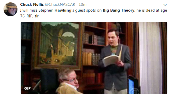 有網(wǎng)友說:“至少我們能在《生活大爆炸》中,反復(fù)看到霍金教授?!?↑