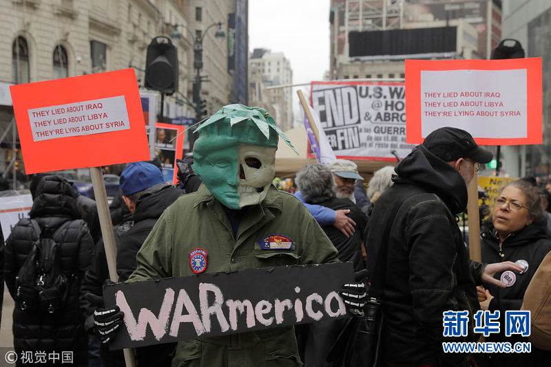美國民眾舉行反戰(zhàn)游行 抗議美英法聯(lián)軍襲擊敘利亞
