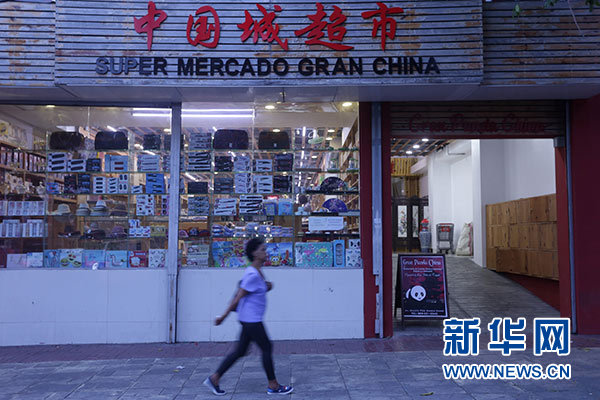5月1日,在多米尼加共和國(guó)首都圣多明各,行人經(jīng)過“中國(guó)城”的一家超市。新華社發(fā)(羅伯托·古斯曼 攝)