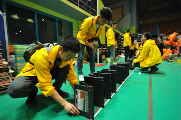 據(jù)吉尼斯世界紀(jì)錄官網(wǎng)報(bào)道,近日,聯(lián)想集團(tuán)在北京航空航天大學(xué)體育館舉辦了以“同心聚力,勇往直前”為主題的誓師大會(huì),1300名聯(lián)想員工參加了此次大會(huì),并創(chuàng)造了一項(xiàng)新的吉尼斯世界紀(jì)錄稱號(hào)。在吉尼斯世界紀(jì)錄認(rèn)證官的見證下,所有員工歷時(shí)兩小時(shí),用520臺(tái)筆記本電腦成功創(chuàng)造“以多米諾骨牌形式擺放并推倒最多筆記本電腦”的新紀(jì)錄。
