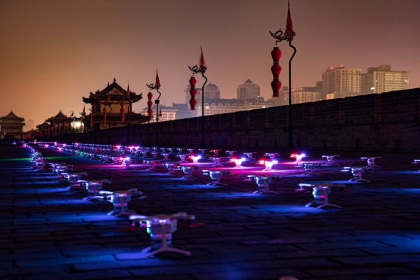 1374架無人機(jī)點亮西安城墻 刷新吉尼斯世界紀(jì)錄稱號