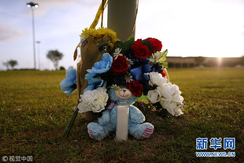 美國民眾獻花悼念圣菲高中槍擊案遇難者