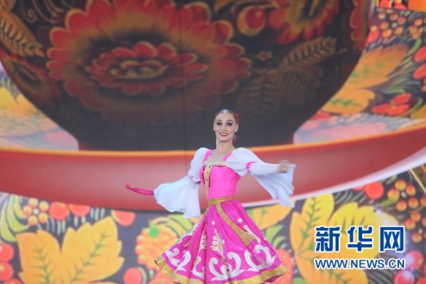 演員們在“斯拉夫巴扎”國際藝術(shù)節(jié)上表演。新華社者 魏忠杰攝