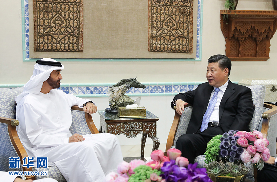 7月20日晚,國家主席習近平應(yīng)阿聯(lián)酋阿布扎比王儲穆罕默德邀請,到王儲官邸作客。雙方在輕松友好氣氛中就中阿關(guān)系以及共同關(guān)心的問題深入交換意見。 新華社記者 謝環(huán)馳 攝