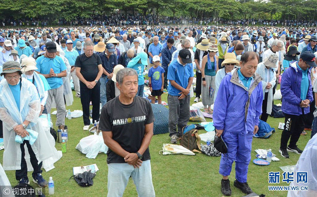 當(dāng)?shù)貢r(shí)間2018年8月11日,日本沖繩縣約7萬民眾8月11日在那霸市舉行大規(guī)模集會(huì),反對駐日美軍將普天間基地遷往名護(hù)市邊野古地區(qū),要求駐日美軍放棄在邊野古地區(qū)新建基地并立即關(guān)閉普天間機(jī)場。當(dāng)天,日本東京都、大阪府、福岡、北海道縣等地民眾也同時(shí)舉行集會(huì)和游行,抗議日本政府推進(jìn)邊野古地區(qū)填海施工。 (圖片來源:視覺中國)