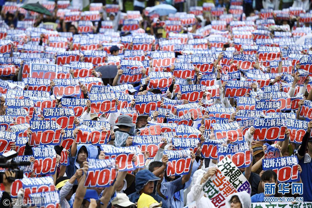 當?shù)貢r間2018年8月11日,日本沖繩縣約7萬民眾8月11日在那霸市舉行大規(guī)模集會,反對駐日美軍將普天間基地遷往名護市邊野古地區(qū),要求駐日美軍放棄在邊野古地區(qū)新建基地并立即關(guān)閉普天間機場。當天,日本東京都、大阪府、福岡、北海道縣等地民眾也同時舉行集會和游行,抗議日本政府推進邊野古地區(qū)填海施工。 (圖片來源:視覺中國)