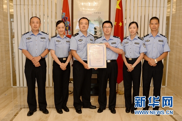 8月14日,中國駐克羅地亞大使胡兆明(左四)在薩格勒布為圓滿完成首次中克警務(wù)聯(lián)巡的中國警察頒發(fā)表彰證書。6名中國警察15日從克羅地亞首都薩格勒布啟程回國,為期一個(gè)月的中國與克羅地亞首次旅游季警務(wù)聯(lián)合巡邏圓滿結(jié)束。新華網(wǎng)發(fā) 高磊攝