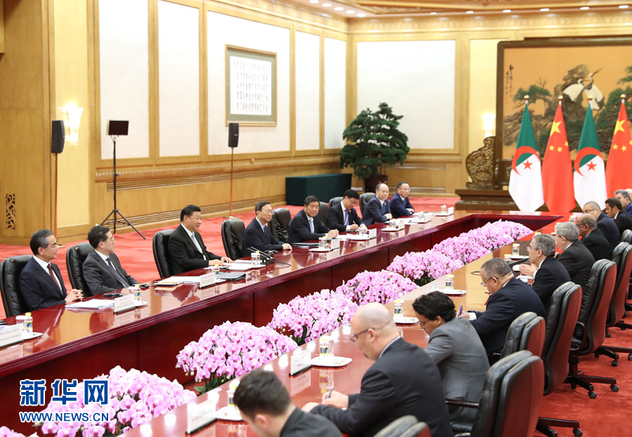 烏葉海亞表示,昨天,我向布特弗利卡總統(tǒng)報告了北京峰會的盛況。他讓我轉(zhuǎn)達(dá)對習(xí)近平主席的熱烈祝賀以及對中國支持非洲的衷心感謝。烏葉海亞表示,阿中關(guān)系歷史悠久。阿爾及利亞在爭取民族獨立和實現(xiàn)國家發(fā)展中得到中方寶貴支持,雙方在國際事務(wù)中一直緊密配合。阿方贊賞并支持北京峰會提出的中非合作新舉措,愿以此次雙方簽署“一帶一路”合作協(xié)議為契機(jī),深化雙方務(wù)實合作。
