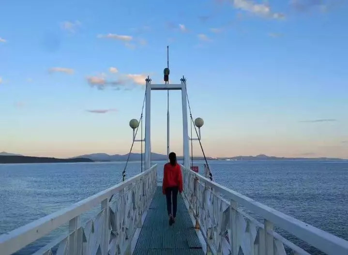 第一張是她站在符拉迪沃斯托克棧橋上的背影。晨曦微露中,紅色的帽衫格外鮮亮。