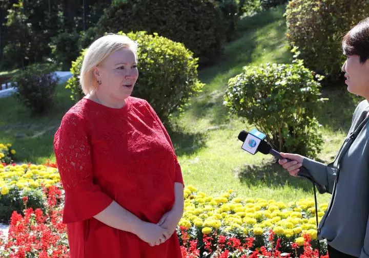 娜塔莉亞·謝米紐塔接受新華社記者采訪(新華社記者龐興雷攝)