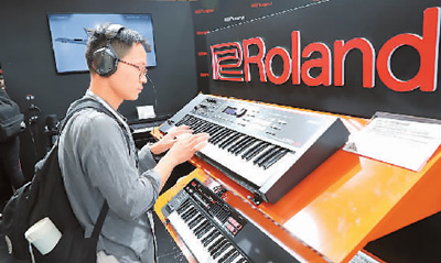 在首屆國(guó)際進(jìn)博會(huì)上,樂(lè)器將是很多人關(guān)注的焦點(diǎn)。圖為一名中國(guó)消費(fèi)者在試用新產(chǎn)品。新華社記者 方 喆攝