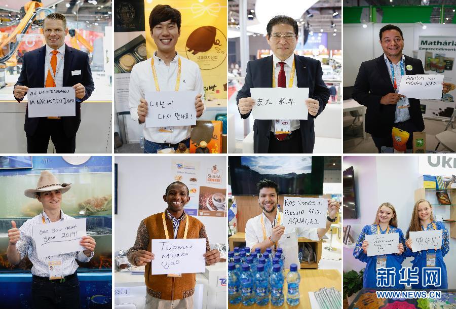 11月10日,進(jìn)博會(huì)上不同國(guó)家的參展人員展示用不同語(yǔ)言書寫的“明年見”(拼版照片)。 首屆中國(guó)國(guó)際進(jìn)口博覽會(huì)11月5日至10日在上海舉行。記者在采訪中了解到,很多參展商在進(jìn)博會(huì)上收獲了不少訂單,宣傳了自己的產(chǎn)品,結(jié)識(shí)了很多朋友。他們表示,希望明年再來(lái)進(jìn)博會(huì)。 新華社記者 侯東濤 攝