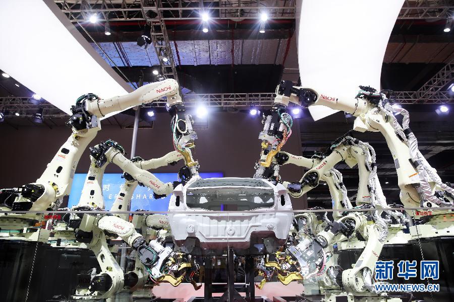11月6日,日本那智不二越公司展出的點(diǎn)焊密集協(xié)作機(jī)器人在進(jìn)行作業(yè)演示。 11月5日至10日,首屆中國(guó)國(guó)際進(jìn)口博覽會(huì)在上海國(guó)家會(huì)展中心舉行。 新華社記者 丁汀 攝