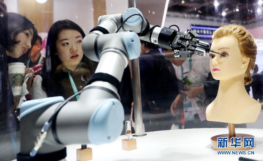 11月7日,參觀者在法國(guó)歐萊雅展臺(tái)觀看機(jī)器人作業(yè)演示。 休戚與共的地球村,共享創(chuàng)新成果已成為國(guó)際社會(huì)的共同意愿和現(xiàn)實(shí)選擇。透過(guò)進(jìn)博會(huì)這個(gè)窗口可以看出,從上下游產(chǎn)業(yè)銜接到前沿領(lǐng)域合作,從協(xié)作共享資源到開放共享智慧,全球經(jīng)濟(jì)發(fā)展的新動(dòng)能正在匯聚。 新華社記者 方喆 攝