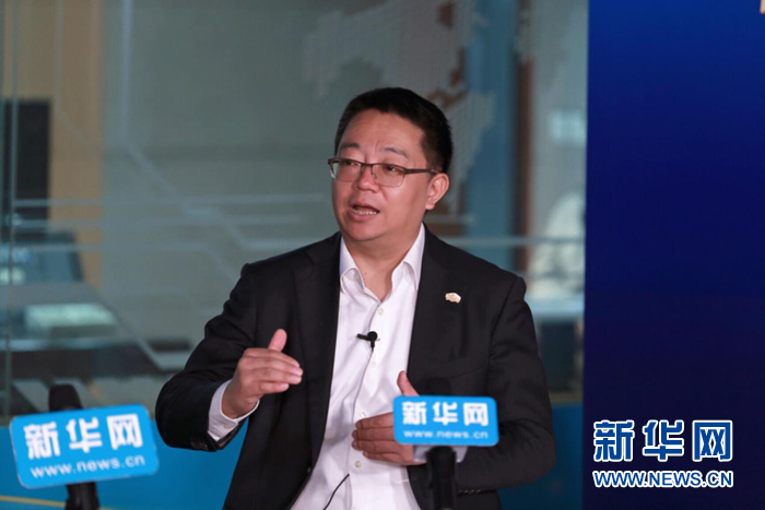 圖為綠地商貿(mào)集團(tuán)董事長(zhǎng)、總經(jīng)理薛迎杰接受新華網(wǎng)獨(dú)家專訪。新華網(wǎng)嚴(yán)曉瑜攝
