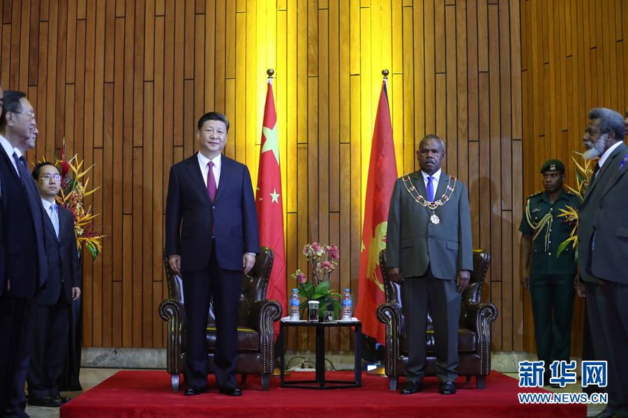 11月16日,國家主席習(xí)近平在莫爾茲比港會見巴布亞新幾內(nèi)亞總督達達埃。 新華社記者 鞠鵬 攝
