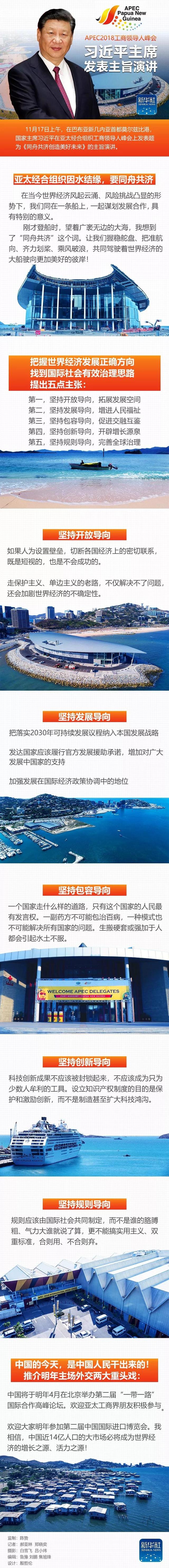 11月17日上午,在巴布亞新幾內(nèi)亞首都莫爾茲比港,國家主席習(xí)近平在亞太經(jīng)合組織工商領(lǐng)導(dǎo)人峰會上發(fā)表題為《同舟共濟(jì)創(chuàng)造美好未來》的主旨演講。