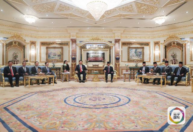 11月19日,國家主席習(xí)近平在斯里巴加灣同文萊蘇丹哈桑納爾舉行會談。新華社記者 鞠鵬 攝