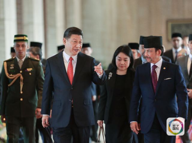 11月19日,國家主席習(xí)近平在斯里巴加灣同文萊蘇丹哈桑納爾舉行會談。這是會談前,習(xí)近平同哈桑納爾步入會場。新華社記者 鞠鵬 攝