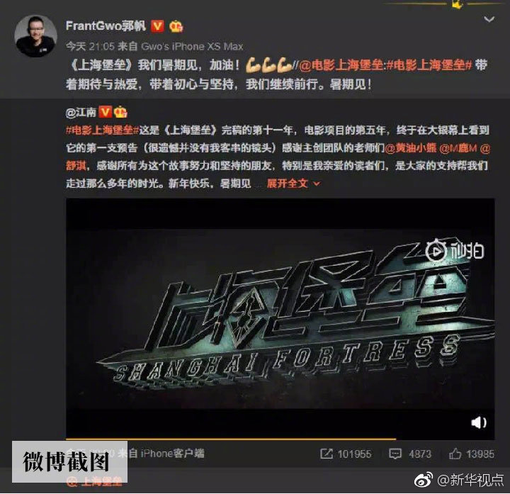 郭帆日前就在微博上轉(zhuǎn)發(fā)了科幻電影《上海堡壘》首個(gè)宣傳片,并表達(dá)對(duì)影片的期待。此片也是由《流浪地球》聯(lián)合出品方之一的騰訊影業(yè)參與出品,預(yù)計(jì)將于今年暑期上映。這種“抱團(tuán)取暖”的作法也讓不少科幻迷在網(wǎng)上津津樂道。