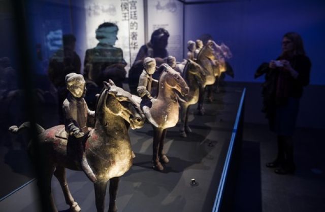 2014年10月21日,在法國巴黎,觀眾在“漢風(fēng)-中國漢代文物展”上參觀。新華社記者陳曉偉攝