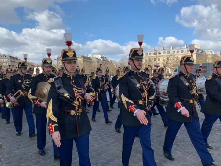 凱旋門星形廣場(chǎng)上,儀仗隊(duì)和軍樂團(tuán)整齊列隊(duì),靜候習(xí)近平主席的到來。新華社記者 高潔 攝