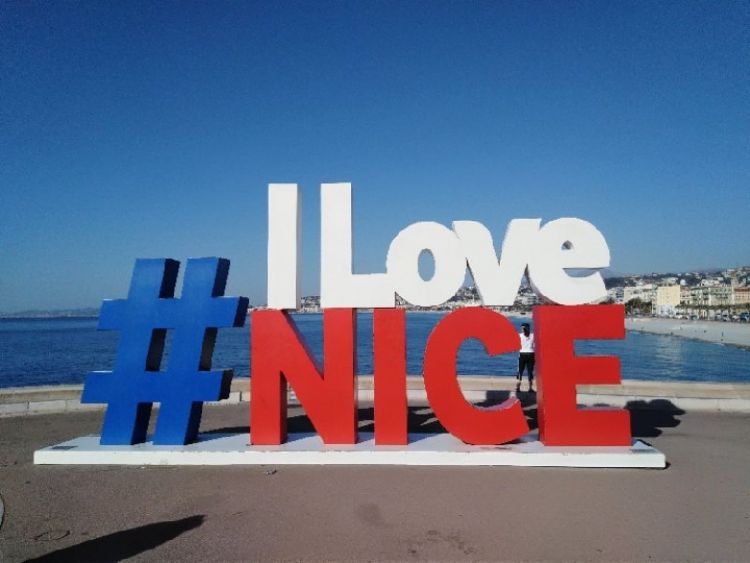尼斯在恐怖襲擊重創(chuàng)后豎起“我愛尼斯”的標(biāo)志。2016年7月15日,習(xí)近平就尼斯恐襲事件向時(shí)任法國(guó)總統(tǒng)奧朗德致慰問電。新華社記者 饒愛民 攝