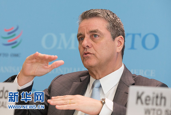 4月2日,在瑞士日內(nèi)瓦,世貿(mào)組織總干事阿澤維多出席記者會(huì)。 新華社記者 徐金泉 攝