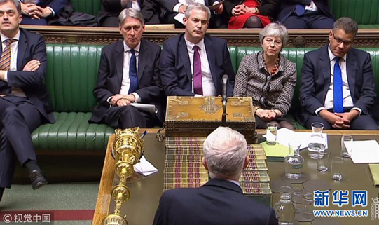 3月29日,在英國(guó)倫敦,英國(guó)首相特雷莎·梅出席議會(huì)下院辯論。英國(guó)議會(huì)下院29日投票否決了“脫歐”協(xié)議關(guān)鍵部分,這進(jìn)一步增加了英國(guó)“脫歐”的不確定性。新華社發(fā)(英國(guó)議會(huì)攝影師馬克·達(dá)菲攝)