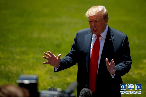 5月24日,美國總統(tǒng)特朗普在華盛頓白宮對媒體講話。美國總統(tǒng)特朗普24日說,美國將向中東增兵約1500人,主要承擔“防御任務”。新華社發(fā)(沈霆 攝)