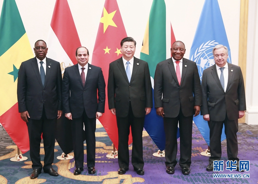 6月28日,國(guó)家主席習(xí)近平在大阪主持中非領(lǐng)導(dǎo)人會(huì)晤。中非合作論壇前任非方共同主席國(guó)南非總統(tǒng)拉馬福薩、非洲聯(lián)盟輪值主席國(guó)埃及總統(tǒng)塞西、中非合作論壇現(xiàn)任非方共同主席國(guó)塞內(nèi)加爾總統(tǒng)薩勒和聯(lián)合國(guó)秘書長(zhǎng)古特雷斯出席。 新華社記者 龐興雷 攝