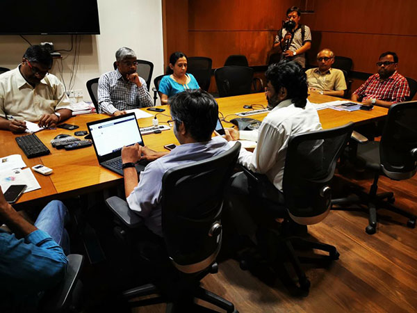 《印度教徒報》各個版面負(fù)責(zé)人于晚間召開碰頭會,商量確定內(nèi)容和版面設(shè)計。新華社記者趙博攝