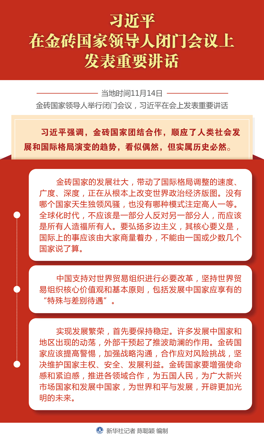 圖表:習(xí)近平在金磚國(guó)家領(lǐng)導(dǎo)人閉門(mén)會(huì)議上發(fā)表重要講話 新華社記者 陳聰穎 編制