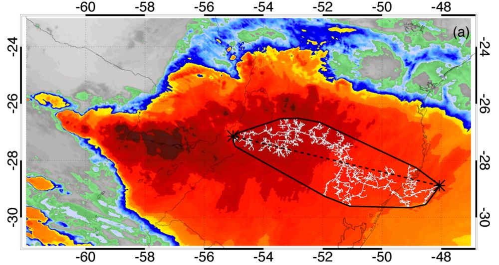 衛(wèi)星照片:單次長度最長閃電2018年10月31日發(fā)生在巴西南部。(圖片來源:世界氣象組織網(wǎng)站)