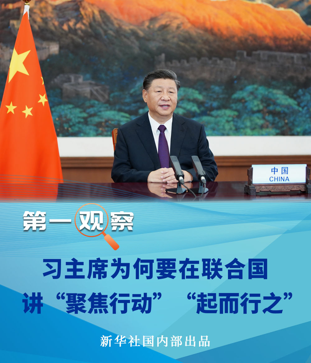 21日,在聯(lián)合國成立75周年紀(jì)念峰會上,習(xí)近平主席就聯(lián)合國如何發(fā)揮作用提出四點(diǎn)建議,其中點(diǎn)出“聚焦行動”這一關(guān)鍵詞,強(qiáng)調(diào)“不能只開藥方,不見療效”。