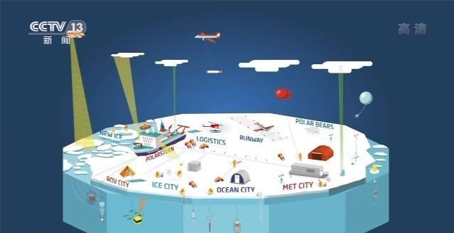 科考隊(duì)還花了18天時(shí)間,在浮冰上搭建起一座研究基地。科考所用的設(shè)備都被布放在不同的分區(qū),在“水下機(jī)器人”中心,利用遠(yuǎn)程操作工具,就可以收集海冰之下的觀測(cè)數(shù)據(jù),并將這些數(shù)據(jù)傳回“極星”號(hào);在海洋中心,科考隊(duì)員在冰層上鉆孔,把觀測(cè)設(shè)備降至海冰之下,采集海水樣本;在海冰研究中心,科考隊(duì)員們可以研究和觀察海冰和冰上的雪覆蓋。而在大氣中心,科學(xué)家們可以收集研究大氣和空氣成分。