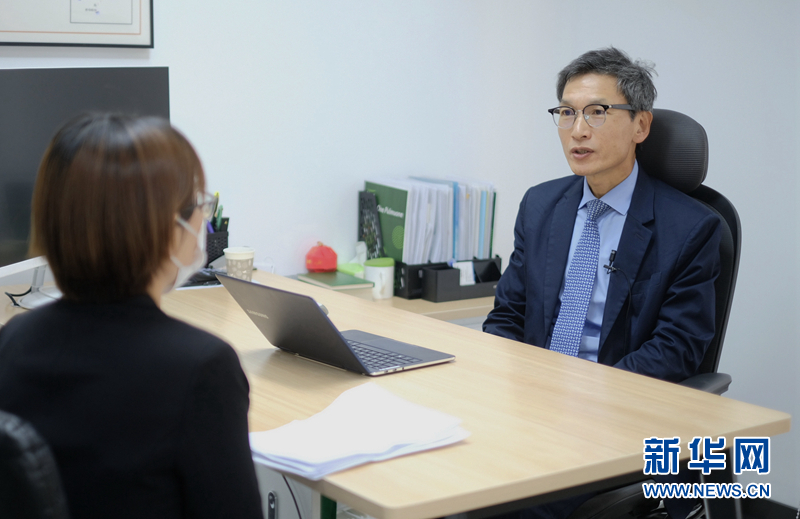 近日,韓國(guó)綠色食品企業(yè)圃美多中國(guó)CEO杜鎮(zhèn)雨接受新華網(wǎng)記者專訪。劉鐘靈 攝