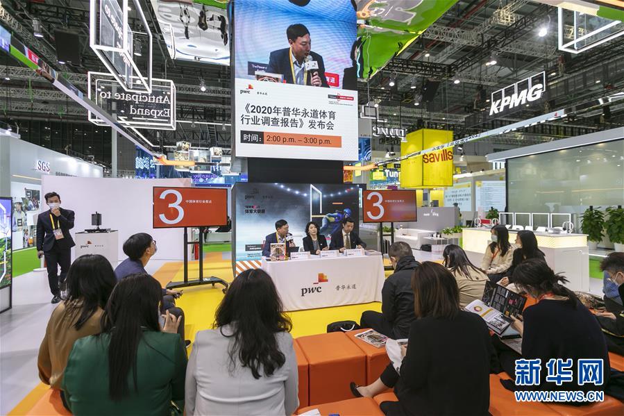 11月5日,普華永道在第三屆進博會服務貿(mào)易展區(qū)現(xiàn)場直播《2020年普華永道體育行業(yè)調(diào)查報告》發(fā)布會。新華社記者 王翔 攝