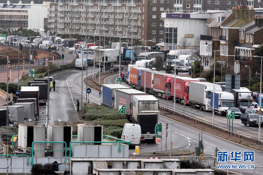 此前,為應(yīng)對英國近期出現(xiàn)的變異新冠病毒,法國宣布從當(dāng)?shù)貢r間20日午夜起48小時內(nèi)禁止來自英國的所有人員旅行,包括與公路、鐵路、航空、水路有關(guān)的貨運人員旅行。這給英國與歐盟國家之間的貨物運輸帶來極大影響。自邊境關(guān)閉以來,大約有2850輛卡車被困在英國肯特郡。