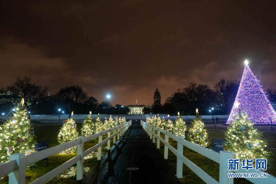 這是12月24日在美國(guó)華盛頓拍攝的白宮和國(guó)家圣誕樹(shù)。