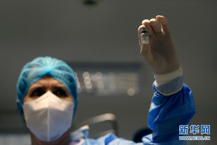 12月27日,在羅馬尼亞首都布加勒斯特一家傳染病醫(yī)院,醫(yī)務(wù)人員向媒體展示新冠疫苗。新華社發(fā)(克里斯泰爾攝)