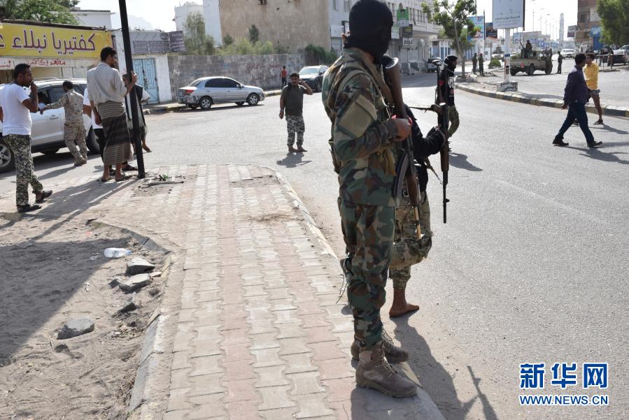 12月30日,在也門亞丁,政府軍士兵在爆炸后封鎖了亞丁國際機(jī)場的入口。新華社發(fā)(穆拉德·阿卜杜攝)