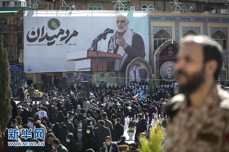 2021年1月2日,人們在位于伊朗克爾曼的伊斯蘭革命衛(wèi)隊(duì)下屬“圣城旅”指揮官蘇萊曼尼墓附近參加他的遇難周年悼念活動。2020年1月3日,美國在伊拉克首都巴格達(dá)發(fā)動襲擊,殺死伊朗伊斯蘭革命衛(wèi)隊(duì)下屬“圣城旅”指揮官蘇萊曼尼等人。新華社發(fā)(艾哈邁德·哈拉比薩斯攝)