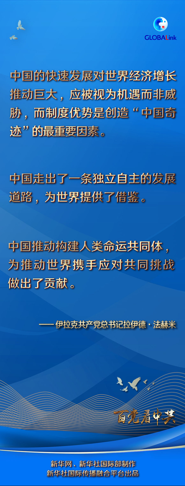 在中國共產(chǎn)黨成立100周年之際,法赫米對(duì)中共取得的偉大成就致以誠摯祝賀。他表示,在中共帶領(lǐng)下,中國在眾多領(lǐng)域?qū)崿F(xiàn)了大跨步發(fā)展。