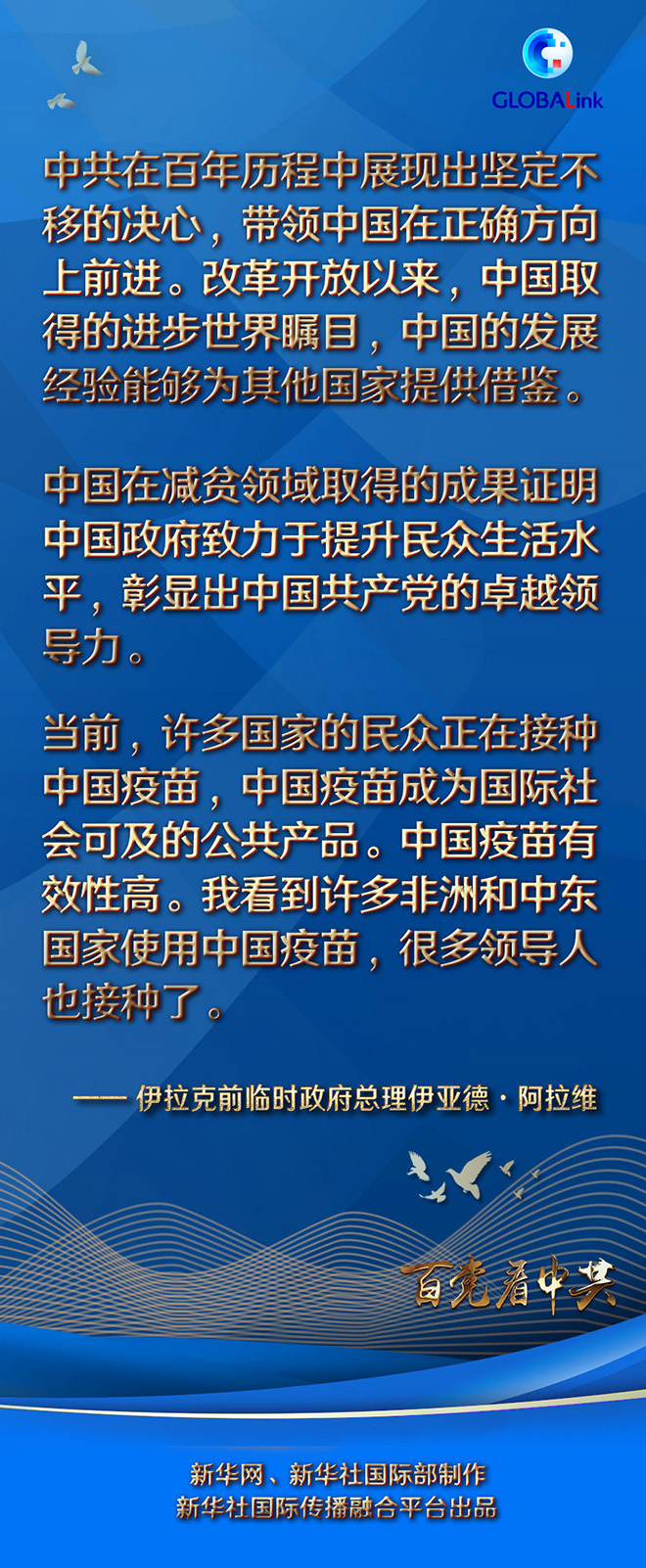 阿拉維對(duì)中國(guó)共產(chǎn)黨百年華誕表示祝賀。他說(shuō),中共在百年歷程中展現(xiàn)出堅(jiān)定不移的決心,帶領(lǐng)中國(guó)在正確方向上前進(jìn)。改革開(kāi)放以來(lái),中國(guó)取得的進(jìn)步世界矚目,中國(guó)的發(fā)展經(jīng)驗(yàn)?zāi)軌驗(yàn)槠渌麌?guó)家提供借鑒。