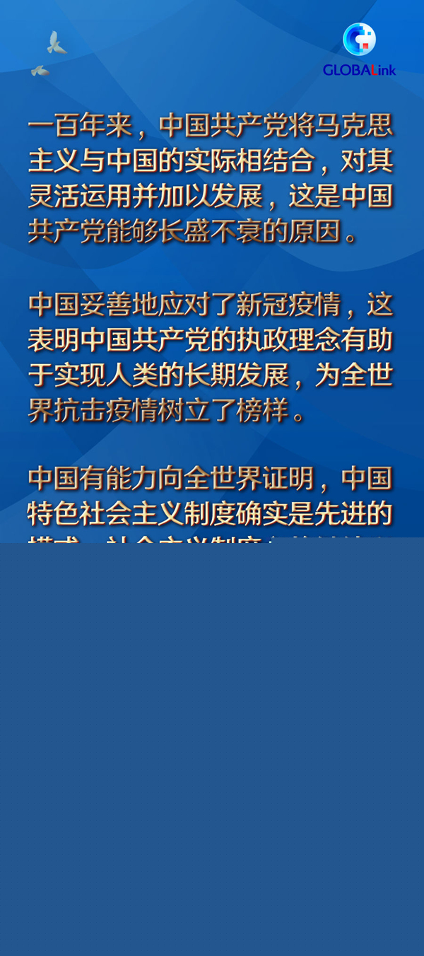 在祝賀中國共產(chǎn)黨成立100周年的同時(shí),索科爾也希冀中國繼續(xù)發(fā)展,中國人民在中國共產(chǎn)黨的領(lǐng)導(dǎo)下取得更大成就。他相信,中國有能力向全世界證明,中國特色社會(huì)主義制度確實(shí)是先進(jìn)的模式,社會(huì)主義制度必將繼續(xù)興盛。