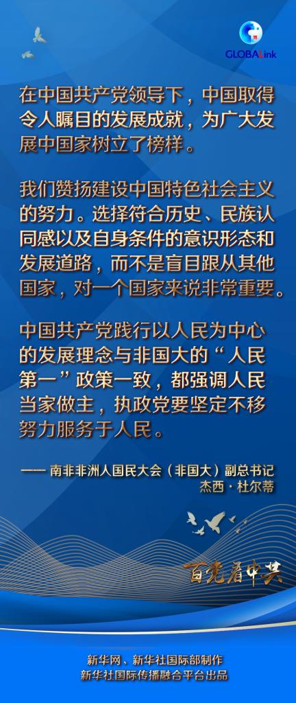 新華社約翰內(nèi)斯堡6月10日電 在中國共產(chǎn)黨領(lǐng)導下,中國取得令人矚目的發(fā)展成就,為廣大發(fā)展中國家樹立了榜樣,南非非洲人國民大會(非國大)副總書記杰西·杜爾蒂日前在接受新華社記者采訪時如是說。