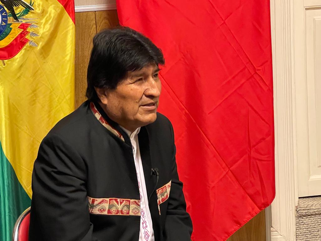 7月6日,玻利維亞爭取社會(huì)主義運(yùn)動(dòng)主席、前總統(tǒng)莫拉萊斯在拉巴斯接受新華社專訪。新華社發(fā)(雷內(nèi)攝)