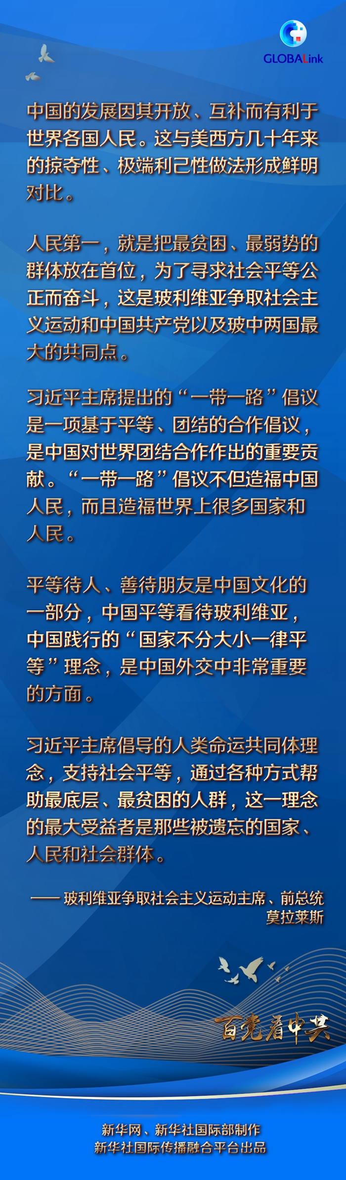 莫拉萊斯指出,習(xí)近平主席倡導(dǎo)的人類命運(yùn)共同體理念,支持社會(huì)平等,通過各種方式幫助最底層、最貧困的人群,這一理念的最大受益者是那些被遺忘的國家、人民和社會(huì)群體。